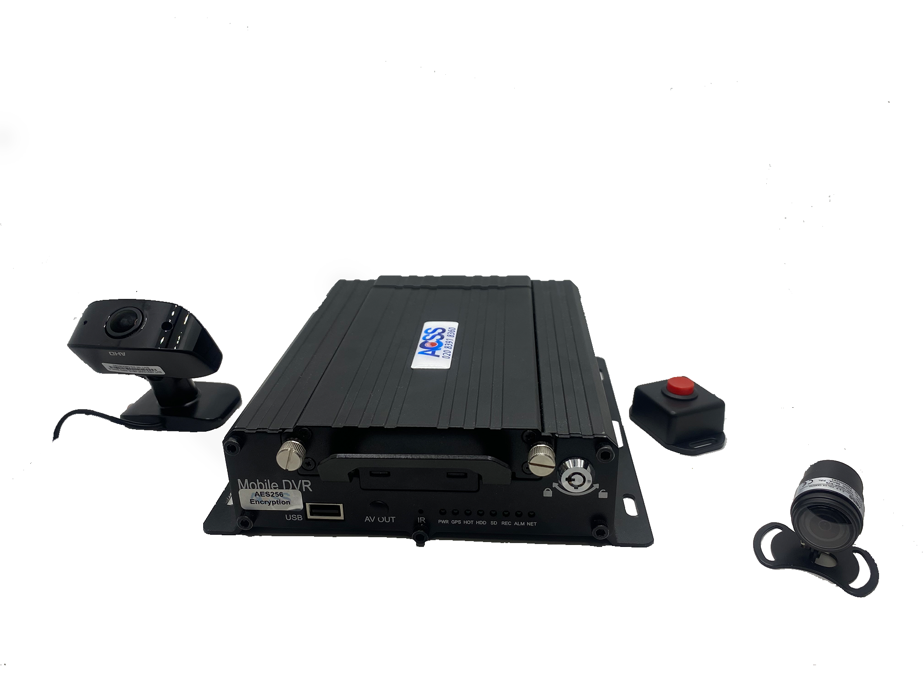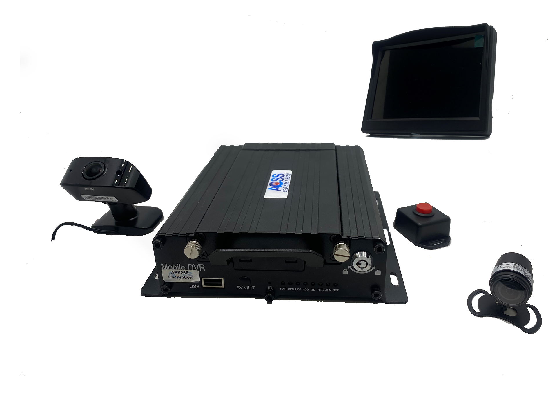 One ACX1B MDVR, 1 internal camera + 1 Forward or rear camera with IR and audio, two panic buttons (driver & passenger) and Privacy Switch