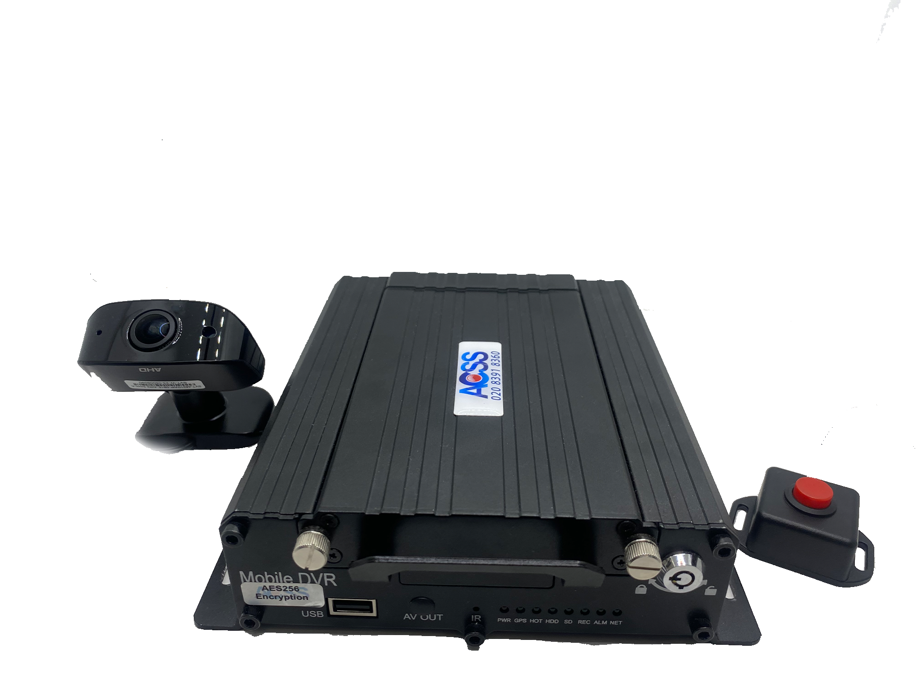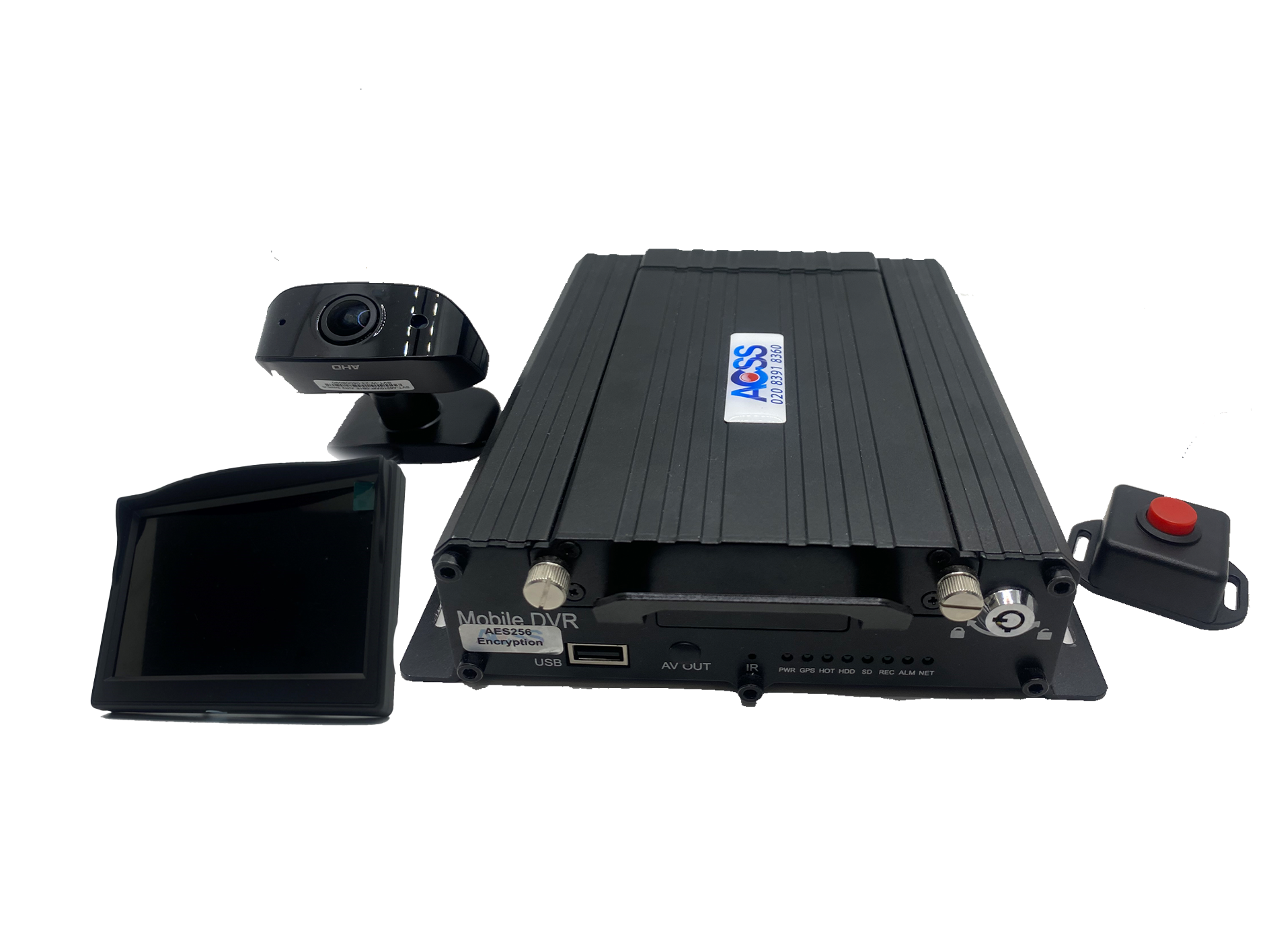 One ACX1B MDVR, 1 internal camera with IR and audio, 2 panic buttons (driver & passenger) and Privacy Switch