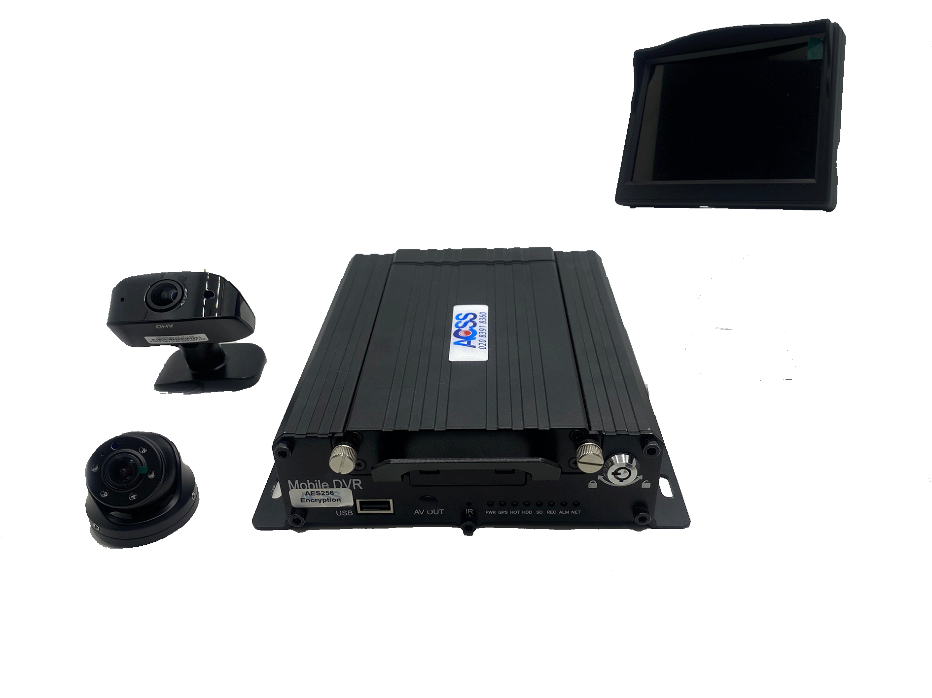 One ACX1B MDVR, 1 internal camera + 1 Forward or rear camera with IR and audio, two panic buttons (driver & passenger) and Privacy Switch, ACMON -5
